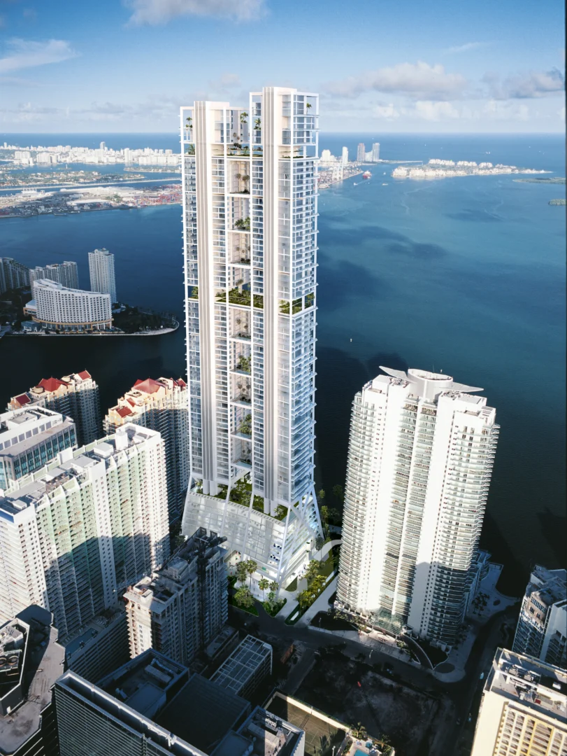 The Foster Towers reshape Miami’s skyline with two elegant, slender towers—one rising 1,049 feet. Aligned with Miami 21 principles, the project features 56,800 sq. ft. of open space, a pedestrian plaza, shops, and a through-block passage that enhances access to the bay and community life.