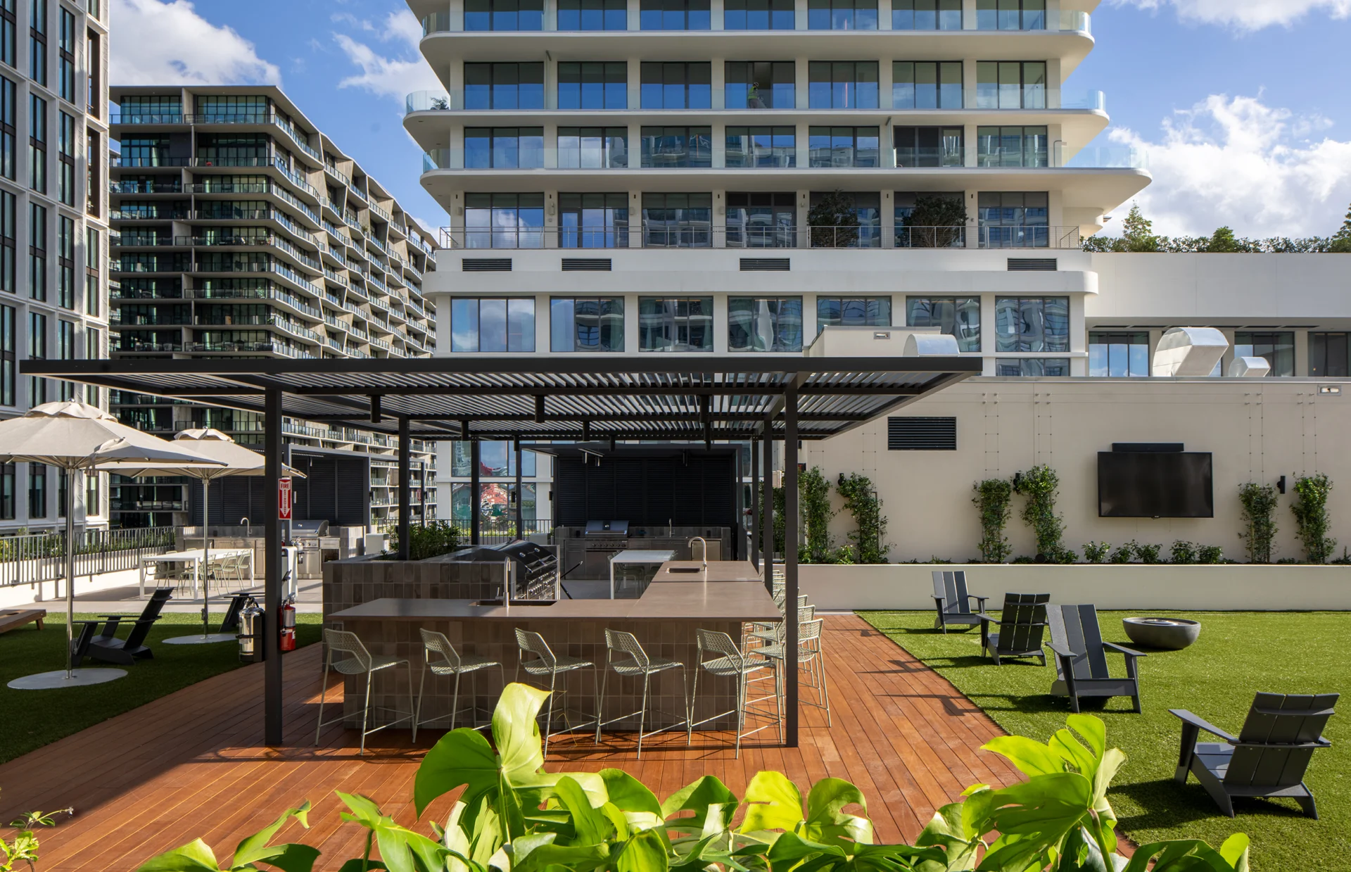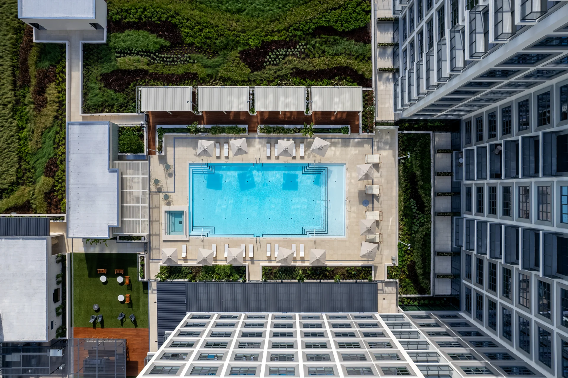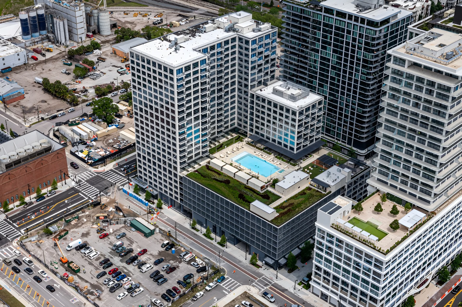 Rising 273 feet, it features 511 residential units and 30,000 SF of ground-floor retail. Inspired by the area’s industrial roots, Asher blends modern living with community-focused design. Amenities include a rooftop pool and lawn, outdoor kitchens, an indoor-outdoor bar, co-working space, fitness center, and entertainment areas that foster resident connection and engagement.