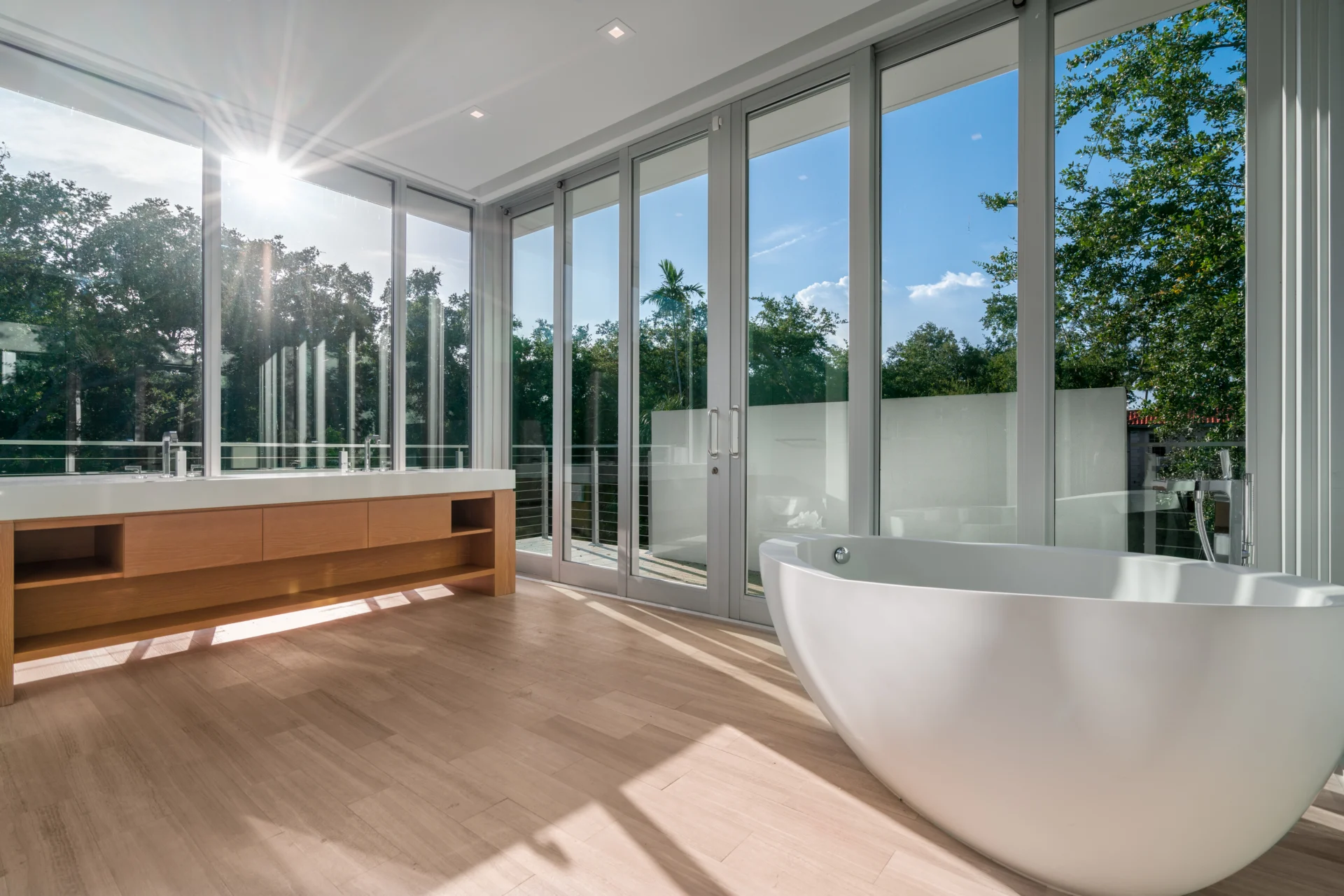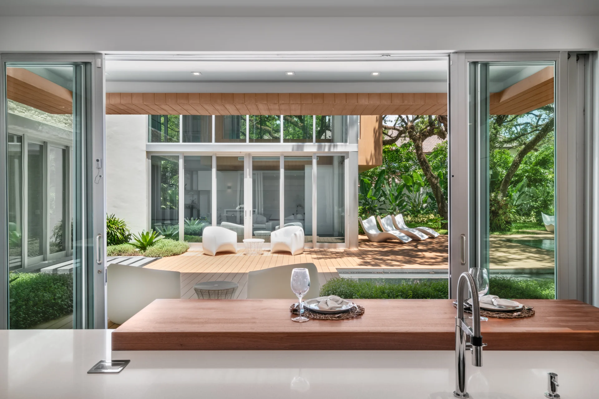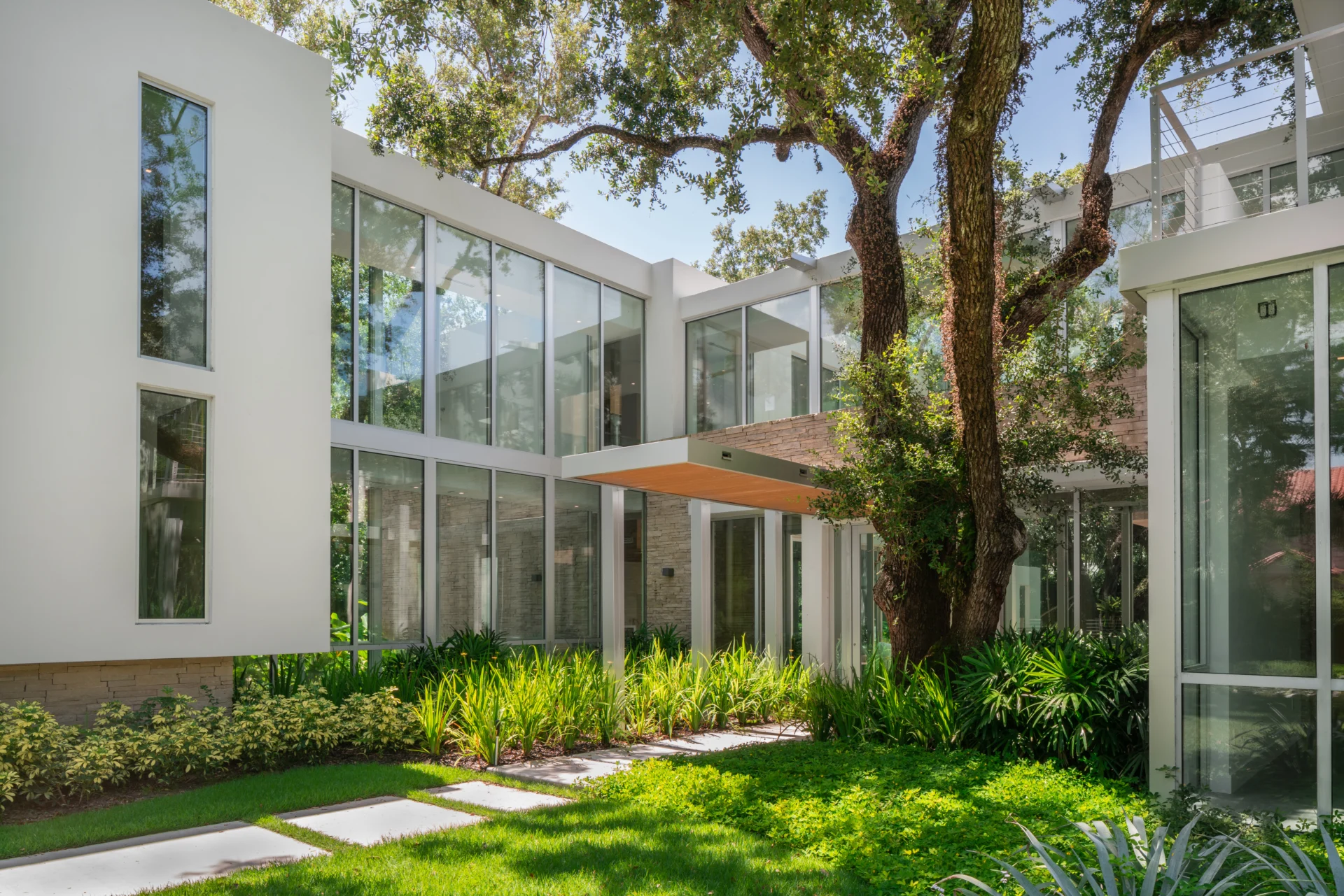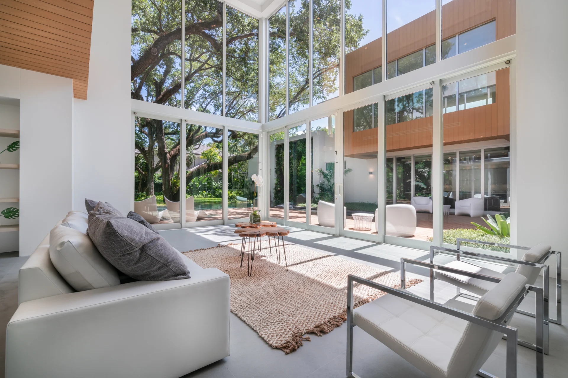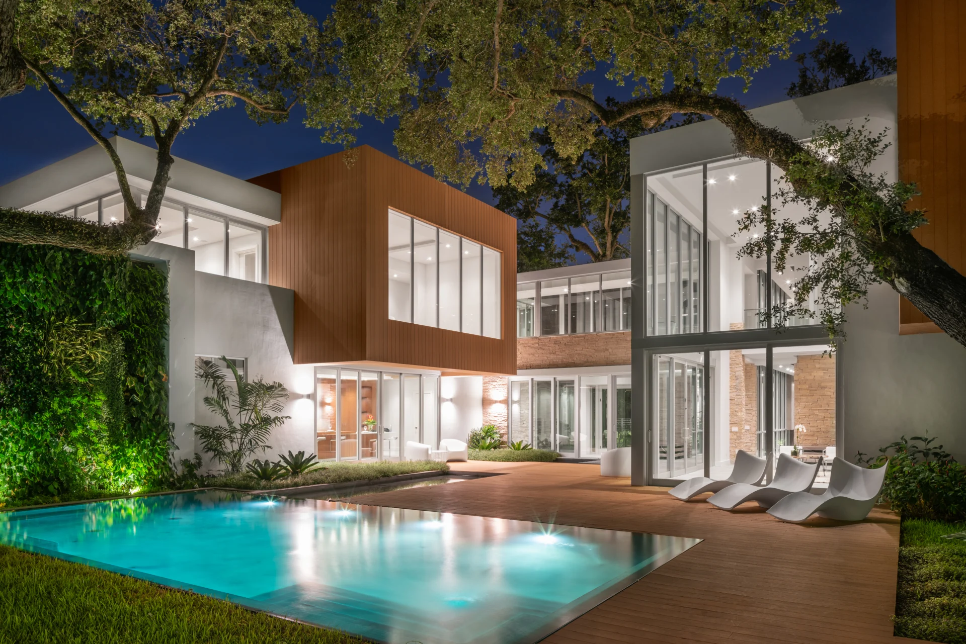 Set on a lush 34,000+ sq. ft. lot in South Miami, this 8,000-sq. ft. tropical modern home blends minimalism with nature. Concrete forms, wood accents, and expansive glass weave around preserved oak trees, blurring indoor-outdoor boundaries. The award-winning kitchen anchors the home with sleek function and refined warmth.