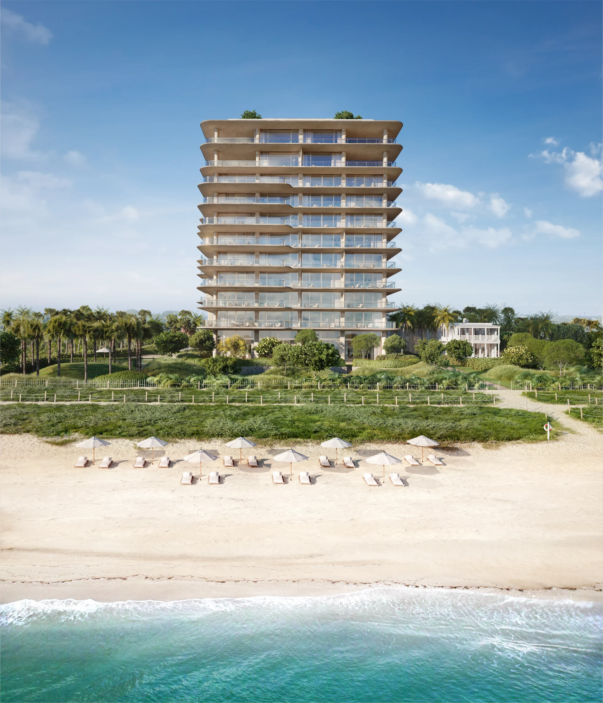 Seaway in Surfside is a rare study in architectural purity and coastal sophistication. Rising gracefully beside the historic Surf Club, the design echoes timeless proportions and Mediterranean modernism. Fluted stone facades, bronze accents, and expanses of low-iron glass create a dynamic play of light and shadow. Across 34 meticulously crafted residences, deep-set terraces, full-height glazing, and seamless indoor-outdoor transitions frame sweeping ocean and bay views. Interior volumes are defined by disciplined geometries and rich materiality—limestone flooring, walnut paneling, and custom metalwork. Anchored by a discreet arrival sequence, lush private gardens, and privileged access to the neighboring Four Seasons, Seaway sets a new benchmark in beachfront living—where elegance, restraint, and context-driven design converge.