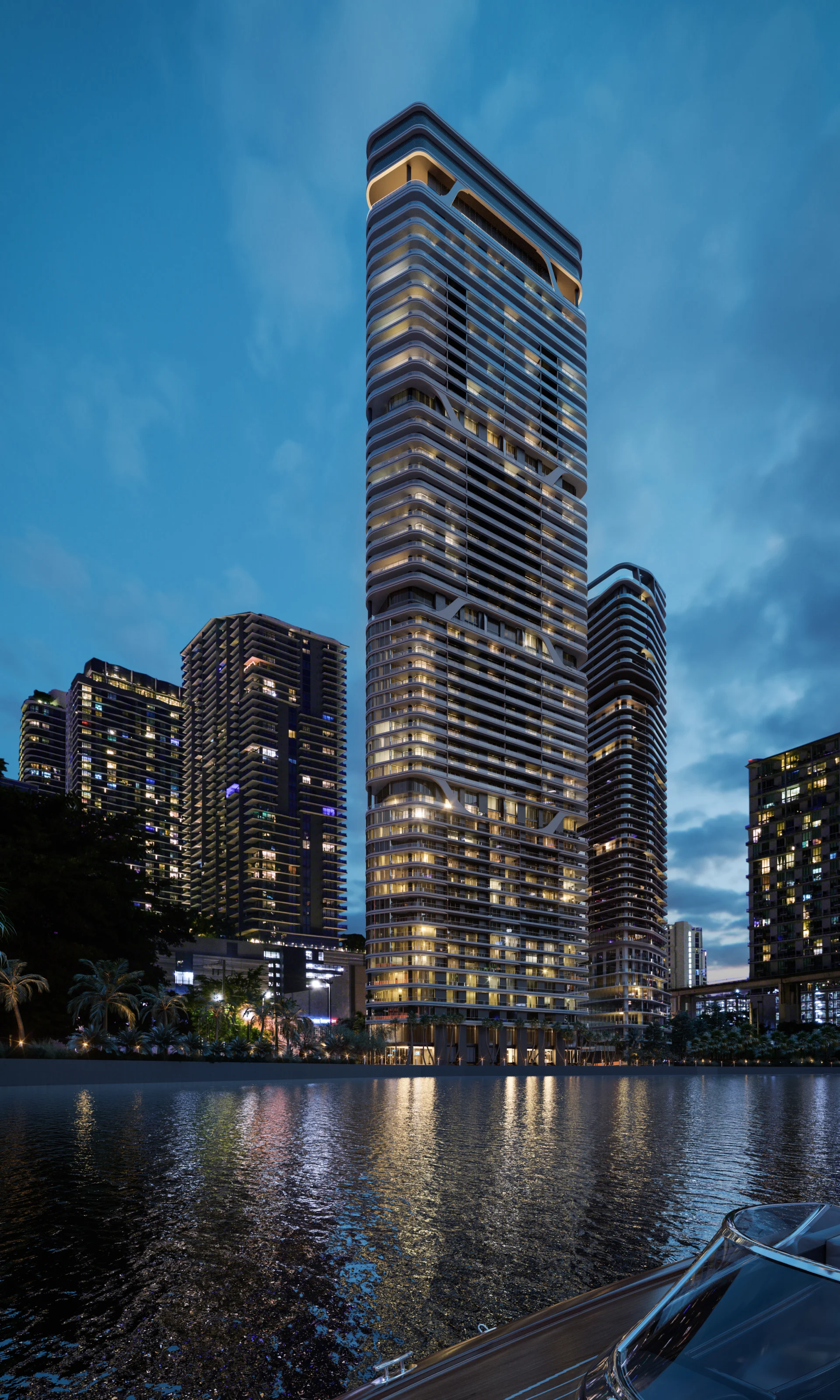With its slender profile and distinctive form, Two Riverside will add a striking new presence to the Miami River and Brickell skyline.